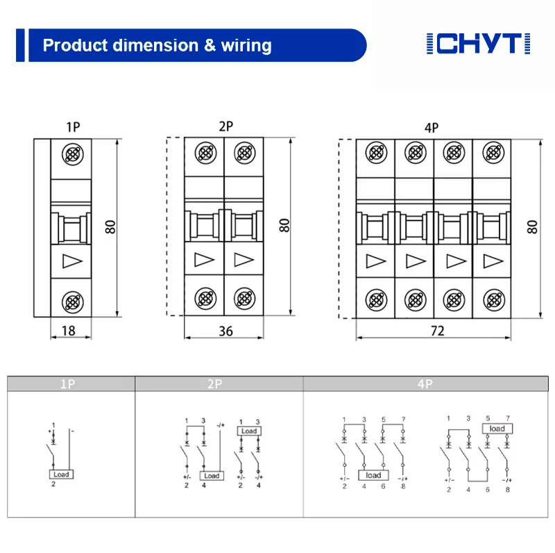 Bu Çin Təchizatçıları Ichyti DC Miniature Circuiter, əsasən həddindən artıq yükləmə və qısa dövrə qorunması üçün istifadə olunan 1000V-dən aşağı olan qiymətli DC dövrələri üçün uyğundur və təsadüfi əməliyyat keçid üçün istifadə edilə bilər. Onun qiymətləndirilmiş cərəyanı 63A-dan çox olmamalıdır.